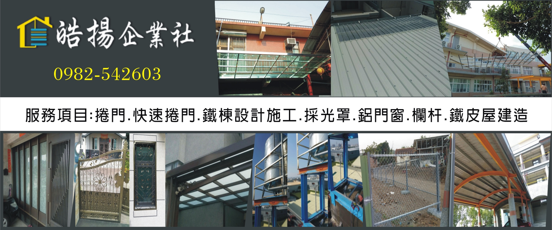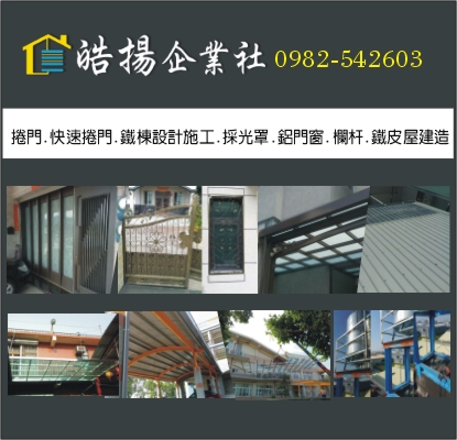 我們擁有專業的技術、完善又親切的售前與售後服務,發揮每一項產品的最高效能,讓客戶買的安心,用的放心! 從事捲門、鐵棟設計施工、採光罩、鋁門窗、欄杆、鐵皮屋建造………等。